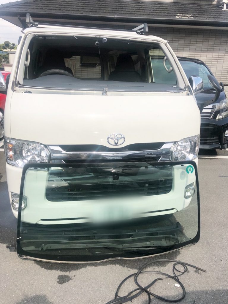 2020/04/24 リペアで治る大きさですが白い傷(打点)が二カ所あるような傷は綺麗に治りません トヨタ ハイエースフロントガラス交換 前田さんありがとうございました! 大阪 フロントガラス交換 出張 格安