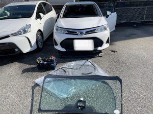 フロントガラスに大きなヒビが入りガラス交換になりました。