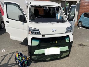 2021/03/26 飛び石がフロントガラスにあたり、そのまま放置してるとヒビが伸びてしまいました。ガラス交換しました。外した写真です完成写真です。お客様ありがとうございます。 大阪フロントガラス交換、 出張作業、格安、 車両保険