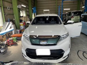 大きな飛び石が当たり、フロントガラス交換を出張作業でしました。