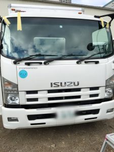 本日はいすゞのフォワード ワイドボディ。 同業者ならわかると思いますがこの時期のいすゞはつらい、、、 モールも接着剤もカッチカチ!夏場とえらい違いです。