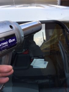 今日はエルフハイキャブのガラス交換。 寒い日はヒートガンで温めないとガラス外れません!大変。