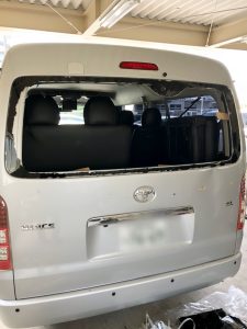 トヨタ ハイエースワイド リアガラス交換 飛び石 枚方